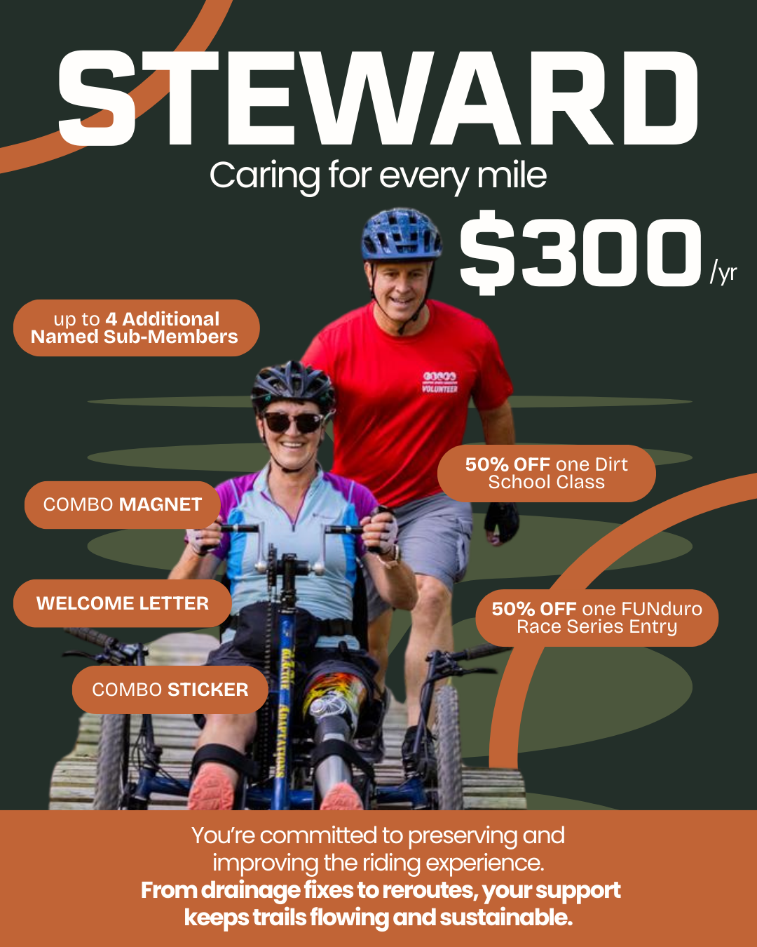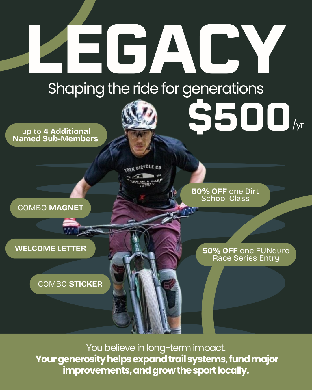Whether you’re supporting as an individual rider, a family who loves weekend trail days, or a community leader investing in long-term growth, there’s a membership level that’s right for you.