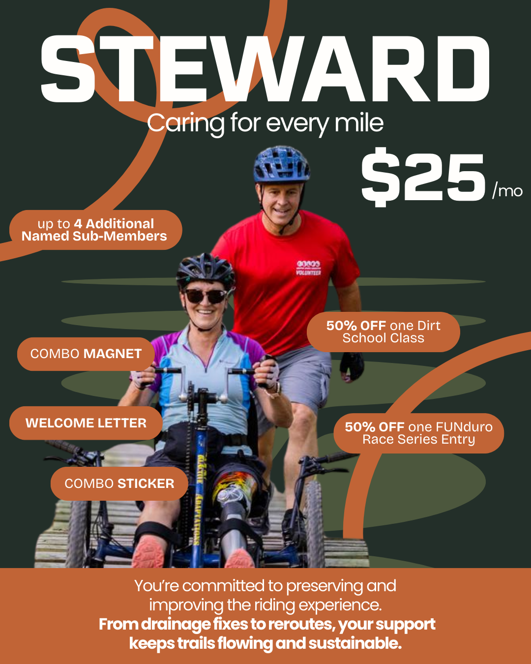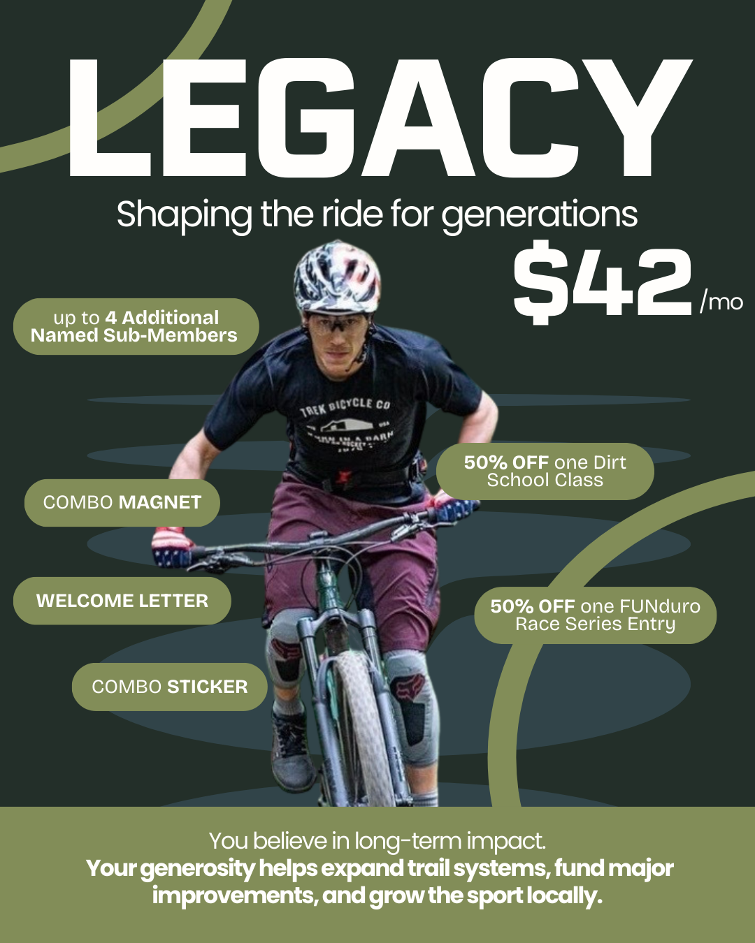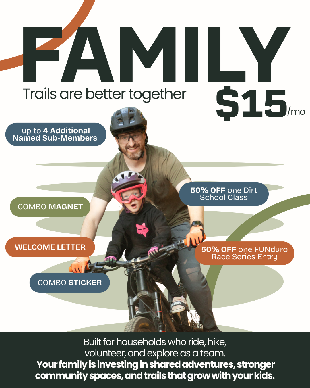 Whether you’re supporting as an individual rider, a family who loves weekend trail days, or a community leader investing in long-term growth, there’s a membership level that’s right for you.