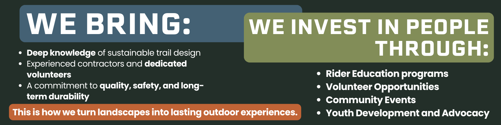 Your support builds community, confidence, healthy lifestyles, opportunities for youth, and connection to nature. And most importantly, we build it together.